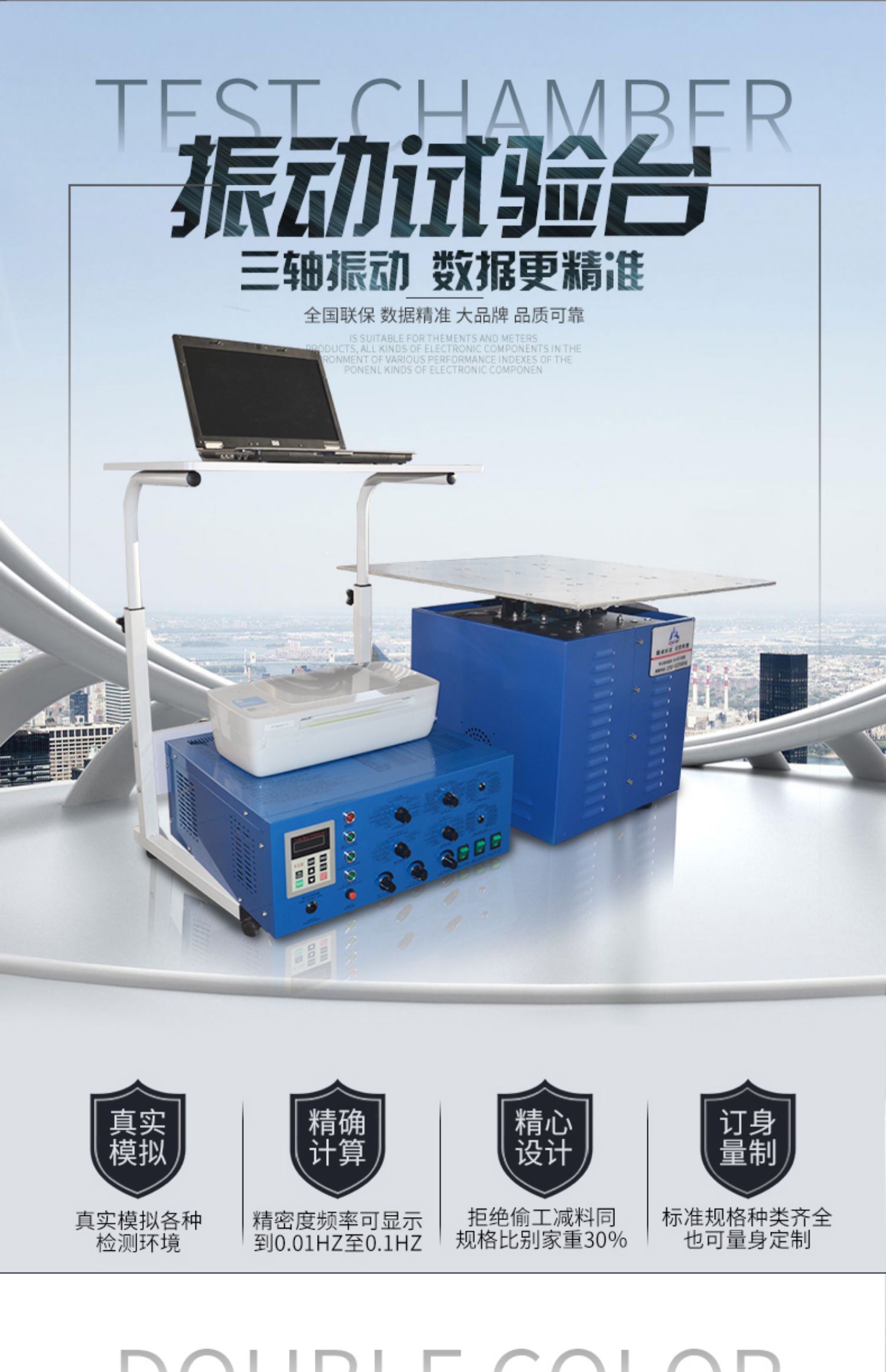 適用于國(guó)防、航空、航天、通訊、電子、汽車(chē)、家電、等行業(yè)。該類(lèi)型設(shè)備用于發(fā)現(xiàn)早期故障,模擬實(shí)際工況考核和結(jié)構(gòu)強(qiáng)度試驗(yàn),產(chǎn)品應(yīng)用范圍廣泛、適用面寬、試驗(yàn)效果顯著、可靠。正弦波、調(diào)頻、掃頻、可程式、倍頻、對(duì)數(shù)、最大加速度調(diào)幅時(shí)間控制全功能電腦控